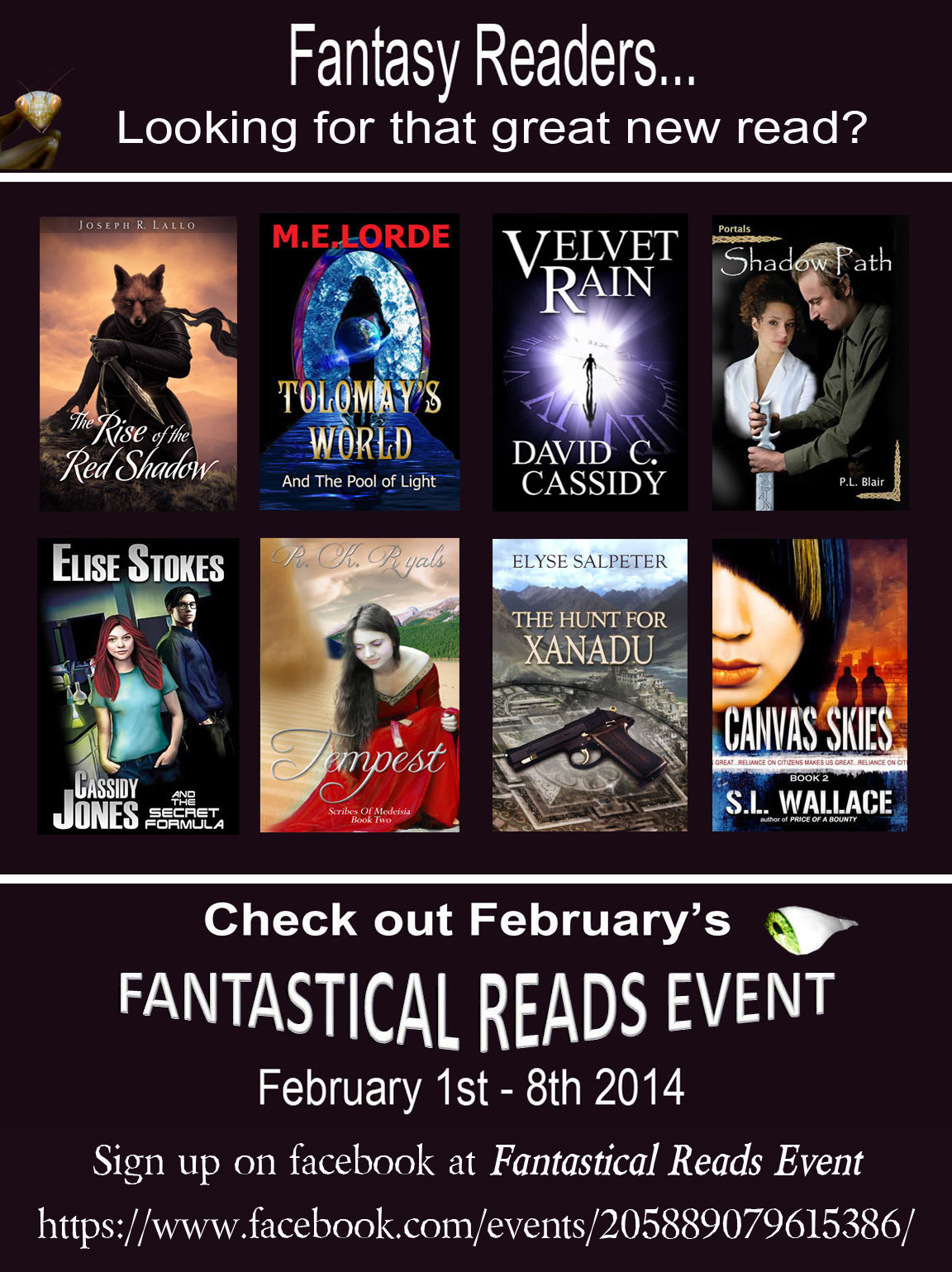 Starting today, February 1st until February 8th, these writers are being presented on M. E. Lorde’s Fantastical Reading Event.